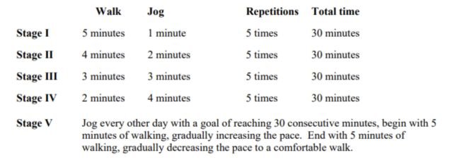 If these drills feel good, then you may be ready to trial some running! Experts on postpartum rehabilitation recommend following a run/walk protocol, slowly increasing the time that you are running each week. Here is a simple example: